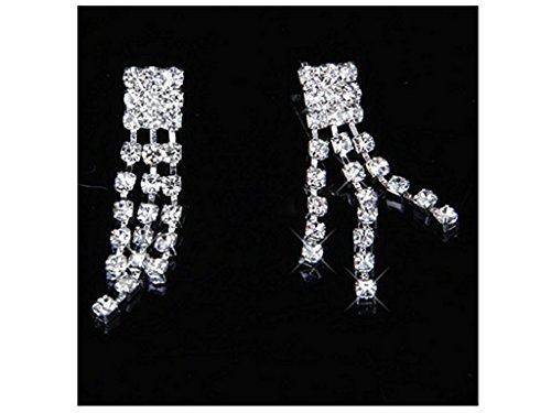 Parure di gioielli da sposa in argento e cristalli, con girocollo di strass e orecchini a 3 file di diamanti