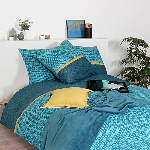 Côté Déco - Parure da Letto con Copripiumino in Microfibra, 240 x 220 cm, Colore: Blu Anatra