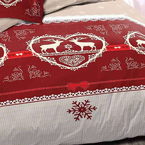 Parure di lenzuola per letto 2 Piazza chalet Winter rosso Larghezza 160