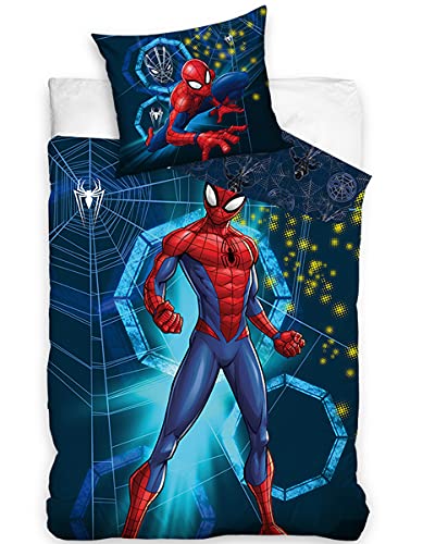 Parure da letto Spiderman per bambini, copripiumino reversibile 140 x 200 cm + federa 65 x 65 cm, 100% cotone