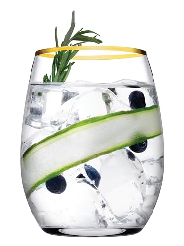 PASABAHCE Amber Confezione 6 Bicchieri, Vetro, Trasparente con Bordo Oro, 35 cl