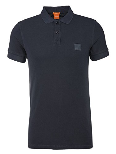 Boss Orange - Polo da uomo in puro cotone, con colletto a bottoni, slim fit, blu scuro