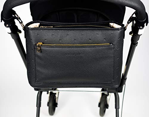 Pasito a Pasito. Borsa organizer per passeggino London, borsa per passeggino in ecopelle, pratica, elegante e spaziosa per portare tutto il necessario durante la passeggiata, colore nero, Taglia Unica