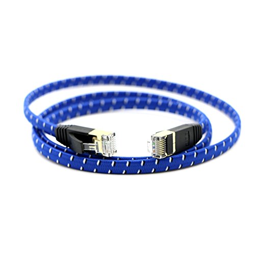 Pasow - CAT7 RJ45 - Cavo ethernet per internet 10 Gbps, in nylon intrecciato, cavo rete STP LAN placcato oro - blu