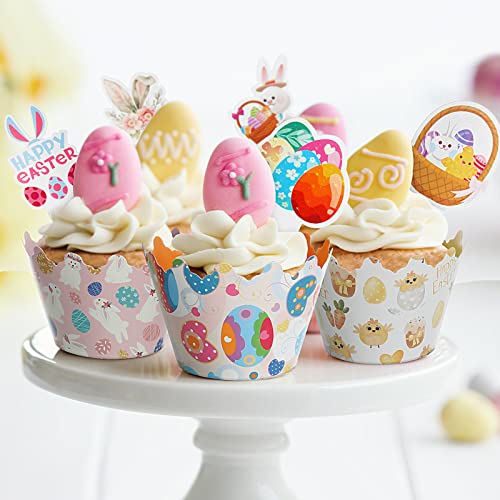 Pasqua Cupcake Decorazioni, Diealles Shine 48 Pezzi Pasqua Cupcake Topper e Wrapper per Pasqua Cupcake Torte Muffin Decorazione