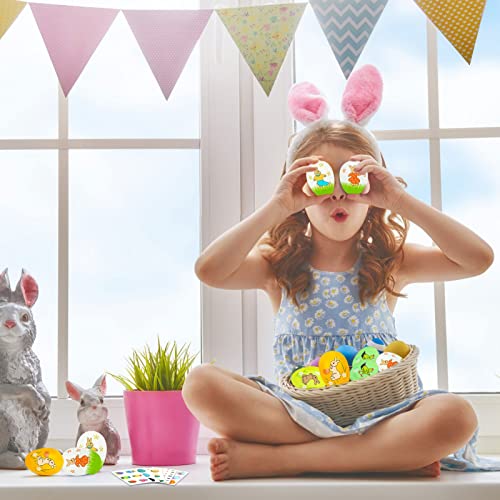 Uova di Pasqua, 12 pezzi Uova Plastica, Decorazione d'attaccatura dell'uovo di Plastica Variopinta, Artigianato per Decorazione, Decorazione Albero Pasqua, con Adesivi Pasquali per Bambini (12*B)