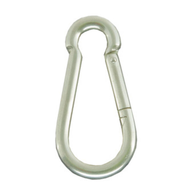 In acciaio zincato. Molla interna, chiusura dentata. Modello pompiere. Lunghezza 50 mm