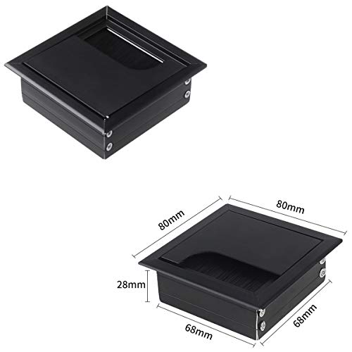 Passacavi Scrivania Passacavo Rettangolare Accessori da scrivania 2 Pezzi 80 mm x 80 mm in Lega di Alluminio con Guarnizione a Spazzola Uscita Cavo Scrivania per Scrivania per Uffcio e Casa.