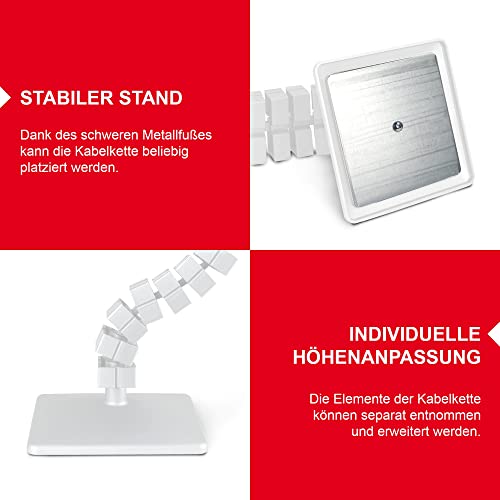 ✔ Contenuto della confezione: 1 X cavo manager, 1 X fissaggio da tavolo con viti, 1 X base | Lunghezza della catenina: 1260 mm (126 cm) | Numero di elementi catena: 66 pezzi | Forma: rettangolare | Materiale: PP/metallo nella base | Colore: bianco (simile a RAL 9016)