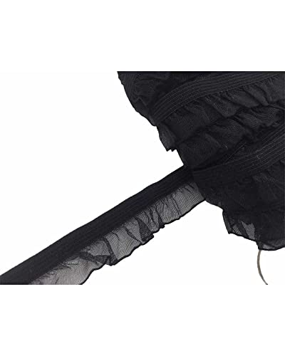 Passamaneria Pizzo Elastico Organza Rouches Alta 17 Mm - Nero