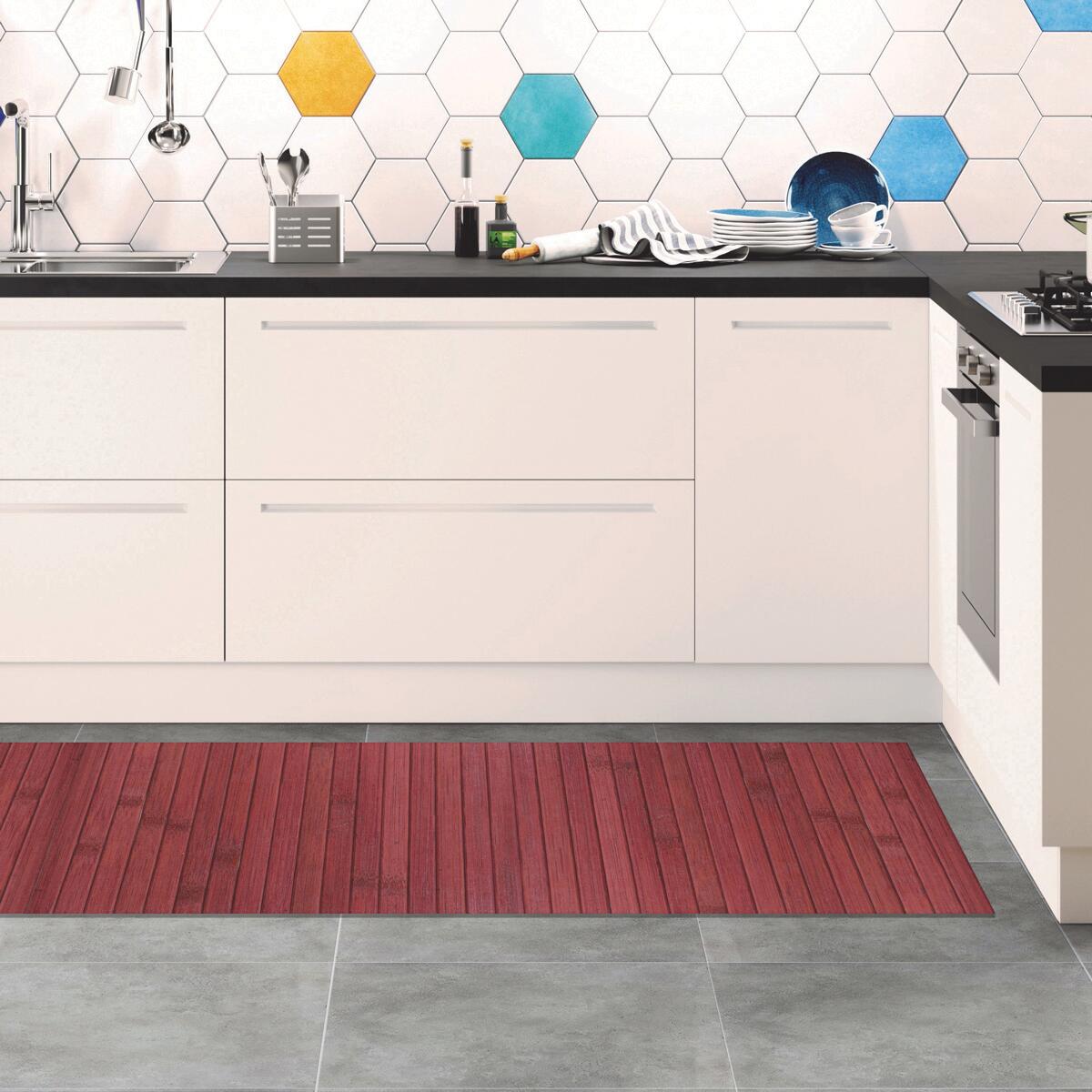 Tappeto in bamboo antimacchia con retro antiscivolo, disponibile in 5 formati ed in 6 colori. Bordo lavorato a filo - fonto in EVA antiscivolo. Il dorso antiscivolo tiene fermo il tappeto, riducendo il rischio di scivolare. È utilizzabile su pavimenti riscaldati. Facile da pulire, le macchie possono essere rimosse semplicemente con una spugna o un panno umido