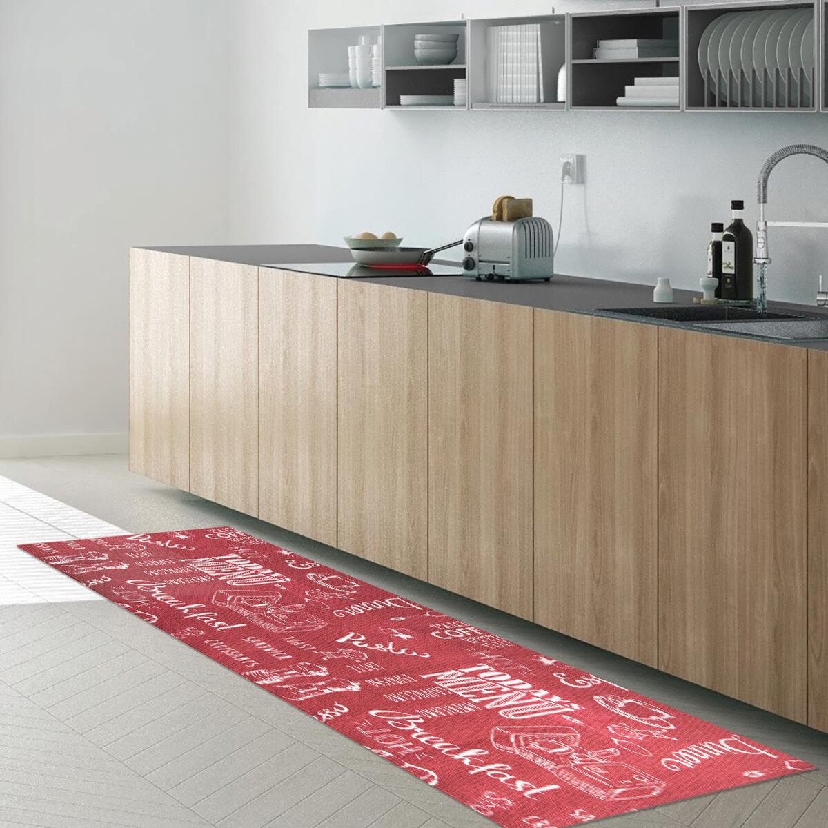 Tappeto stampato in 100% cotone, con fondo in dot lattice antiscivolo, disponibile in 6 formati. Tappeto Blackboard: Tappeto ideale per una cucina vintage e shabby chic. Resistente e funzionale, realizzato in cotone naturale, il dorso antiscivolo tiene fermo il tappeto, riducendo il rischio di scivolare.. Ideale per una cucina vintage e shabby chic. Facilmente lavabile a mano o in lavatrice a 30°