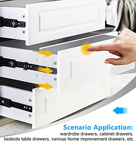 Passatoia per cassetti da spingere per aprire con cuscinetto a sfera 450 mm, con 3 pieghe e estensione completa, resistente capacità di carico 45 kg, 1 paio (confezione da 2) (50,8 cm)