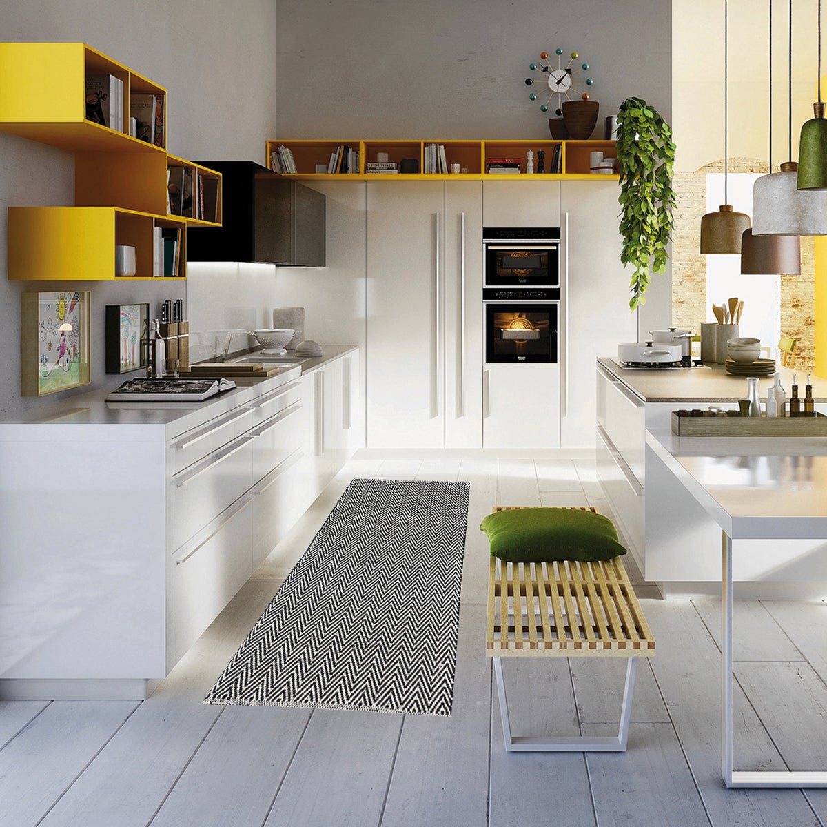 In cotone, tessuto a macchina. Ideale per proteggere e decorare tutta la lunghezza della cucina. Facile da pulire, può essere lavato in lavatrice a basse temperature