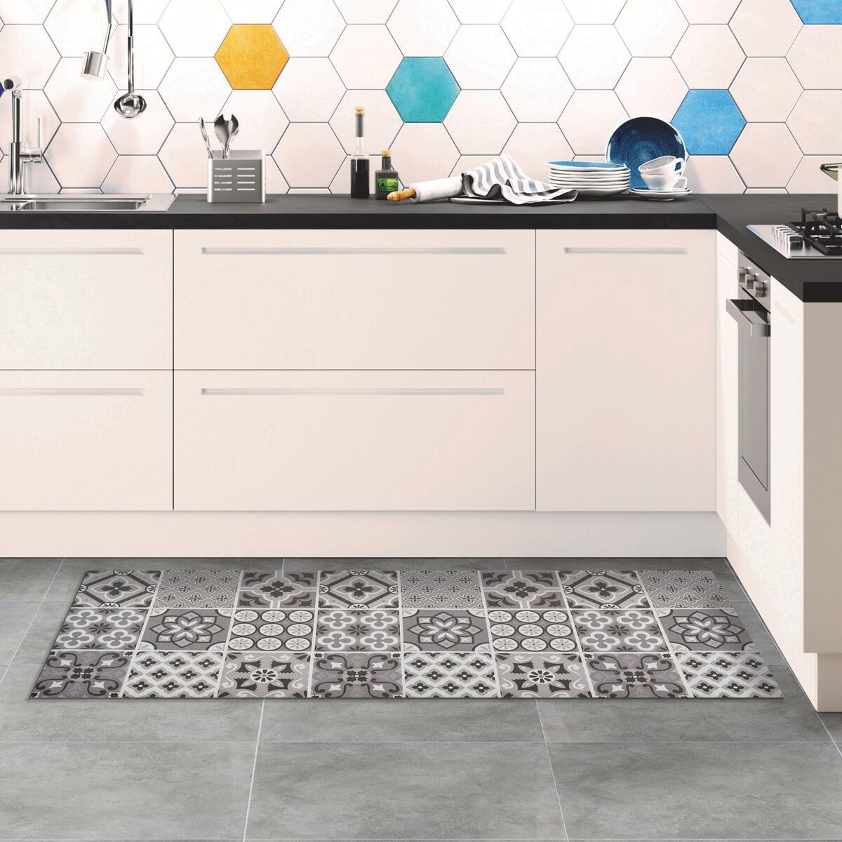Tappeto stampato in digitale in 100% pvc atossico, disponibile in 5 formati. Tappeto Relax: Tappeto ideale per una cucina moderna. Morbido effetto antistress, antiscivolo, con bordo termosaldato.. Ideale per una cucina moderna. Facile da pulire, le macchie possono essere rimosse semplicemente con una spugna o un panno umido