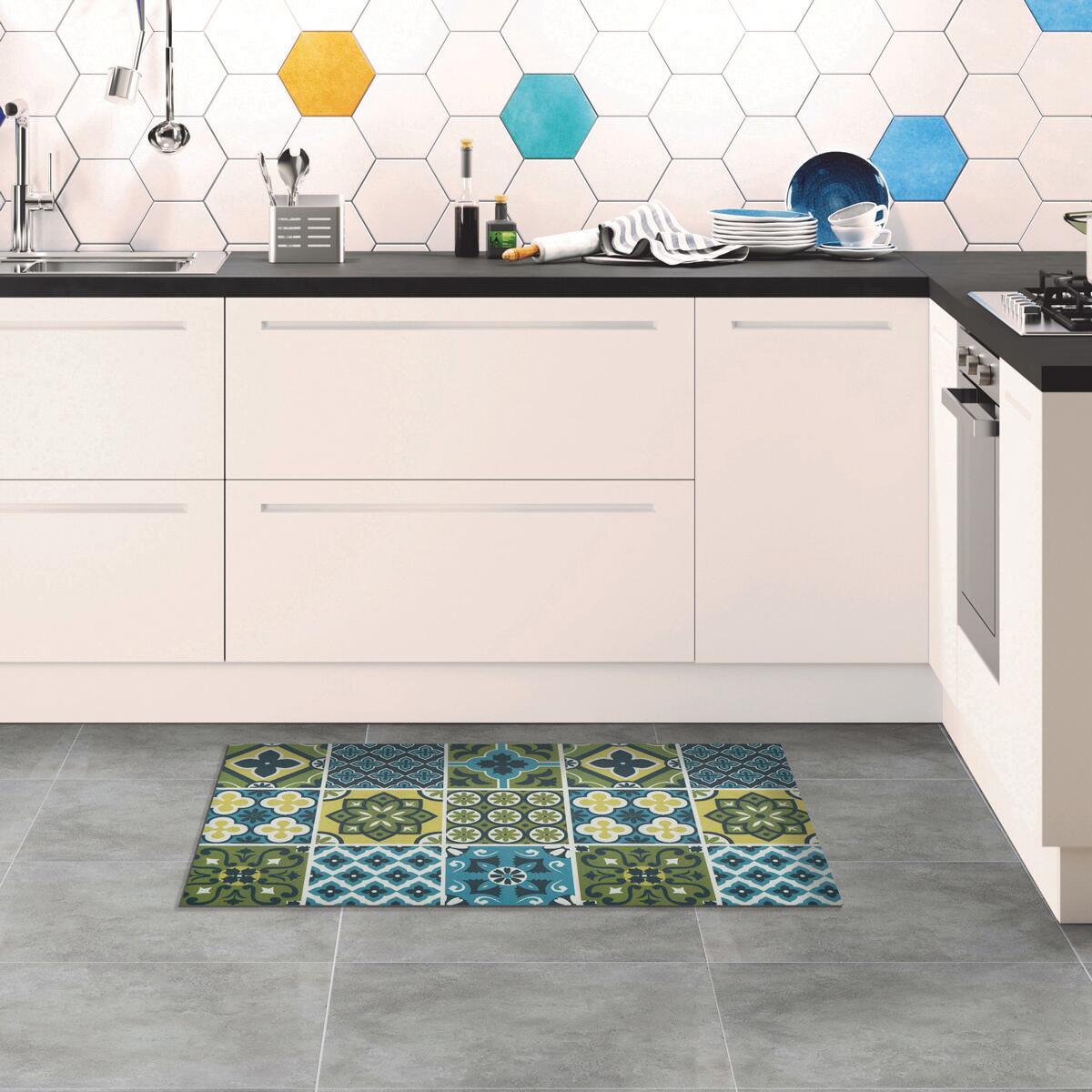 Tappeto stampato in digitale in 100% pvc atossico, disponibile in 5 formati. Tappeto Relax: Tappeto ideale per una cucina moderna. Morbido effetto antistress, antiscivolo, con bordo termosaldato.. Ideale per una cucina moderna. Facile da pulire, le macchie possono essere rimosse semplicemente con una spugna o un panno umido