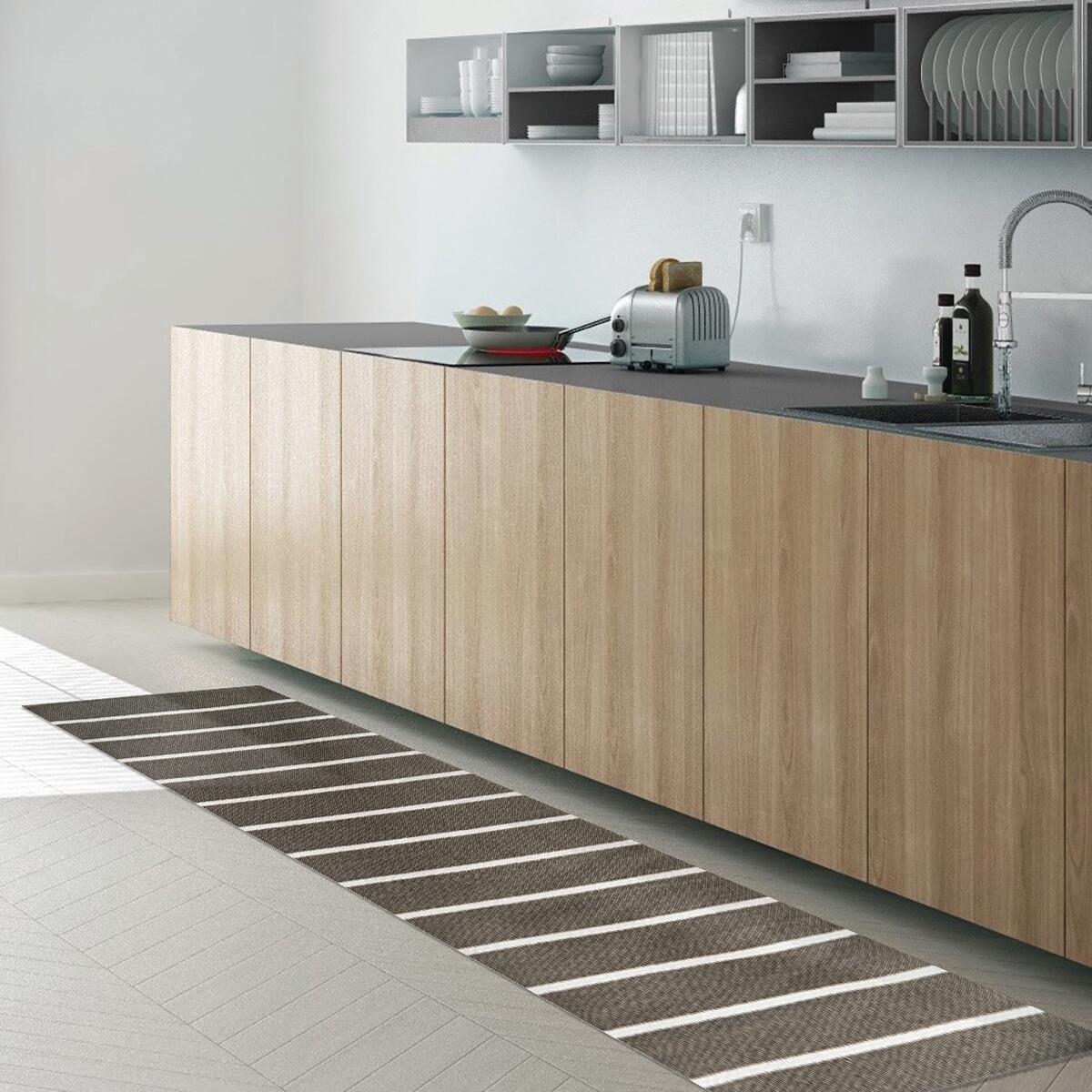 Tappeto stampato in 100% cotone, con fondo in dot lattice antiscivolo, disponibile in 6 formati. Tappeto Rigato: Tappeto ideale per una cucina vintage e shabby chic. Resistente e funzionale, realizzato in cotone naturale, il dorso antiscivolo tiene fermo il tappeto, riducendo il rischio di scivolare.. Ideale per una cucina vintage e shabby chic. Facilmente lavabile a mano o in lavatrice a 30°