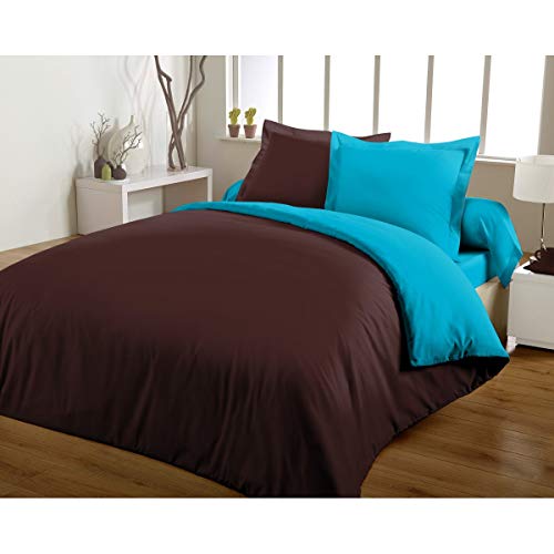 Home Passione Parure Copripiumino Matrimoniale 3 pezzi 220 x 240 cm, bicolore Cioccolato/turchese microfibra cioccolato/turchese 240 x 220 x cm
