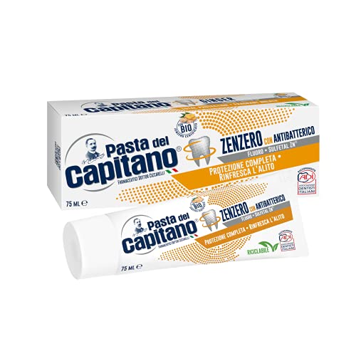 Pasta del Capitano, Dentifricio Zenzero con Antibatterico Bio, Garantisce la Protezione Completa dei Denti e Dona un Alito Sempre Fresco, 100% Made in Italy, Tubetto da 75 ml