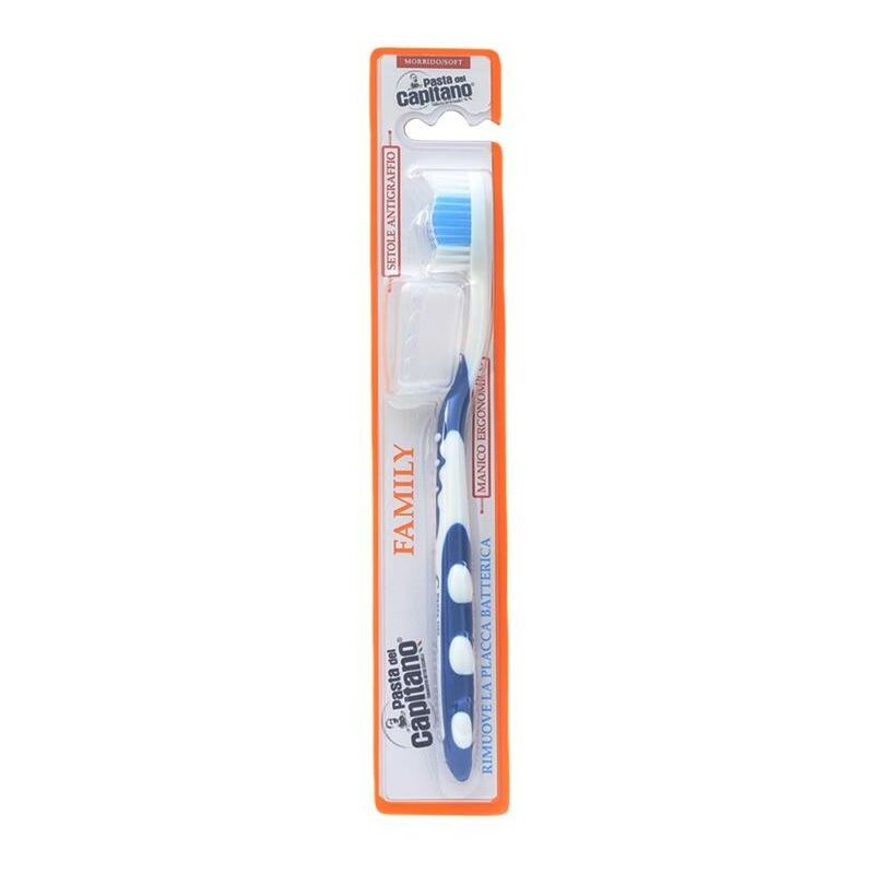 Pasta Del Capitano Spazzolino Family con setole dure è ideale per l'igiene orale di tutta la famiglia. La sua efficacia è garantita dalle setole dure che puliscono a fondo ma non graffiano e dalla testina compatta che assicura la rimozione della placca e una pulizia ottimale di denti e gengive. Spazzolino Pasta del Capitano Con setole forti Con testina morbida e manico ergonomico Rimuove la placca batterica ARTICOLO ASSORTITO: verrà spedito in un colore/decoro assortito a seconda della disponibilità del magazzino.