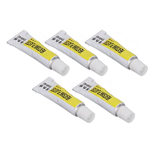 PASTA BIANCA E BUONA ADESIONE: Questo grasso adesivo al silicone ha pasta bianca, buona adesione, 5 g per tubo, totale 25 g, può essere utilizzato per un certo periodo. Sono presenti 5 tubetti di grasso adesivo al silicone.