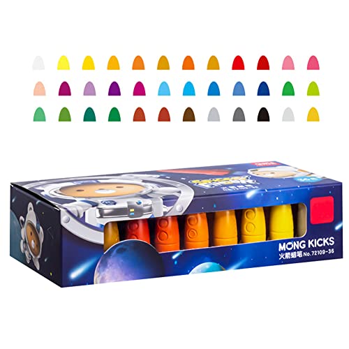 Pastelli a cera per bambini, 36 colori, a forma di testa di razzo, per bambini, lavabili, Toddler Wax Crayons, matite colorate per bambini, matite colorate per bambini