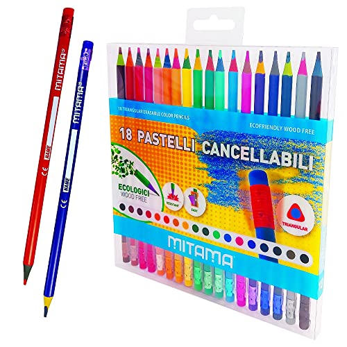Pastelli Cancellabili Mitama Impugnatura Triangolare Laccati, mina 3.3, con Gomma, in Pet Box 18 pz