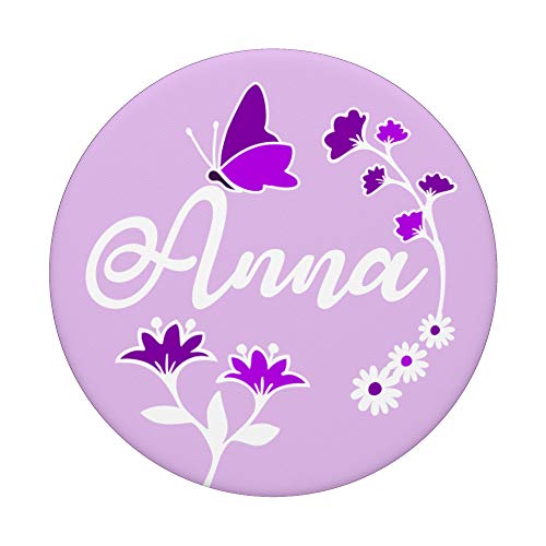 Anna Nome Pastello Lavanda Viola Farfalla Personalizzato Carino PopSockets PopGrip Intercambiabile