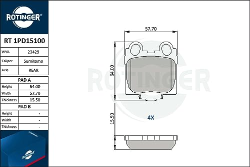 Pastiglie dei freni ROTINGER (Posteriore) RT 1PD15100, ECE R90, Set da 4 pezzi