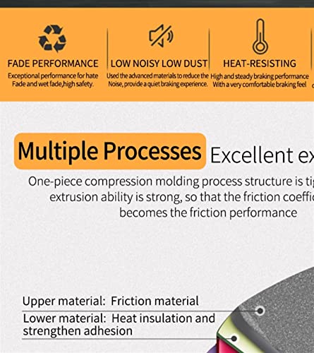 ✔ Frenata sensibile: le pastiglie dei freni sono state sottoposte a decine di migliaia di esperimenti scientifici sui freni. Migliorando continuamente la formula di produzione per migliorare la resistenza alle alte temperature, aumentare gradualmente la sensibilità dei freni delle pastiglie dei freni per assicurarsi di ridurre efficacemente la distanza di frenata in caso di frenata di emergenza.