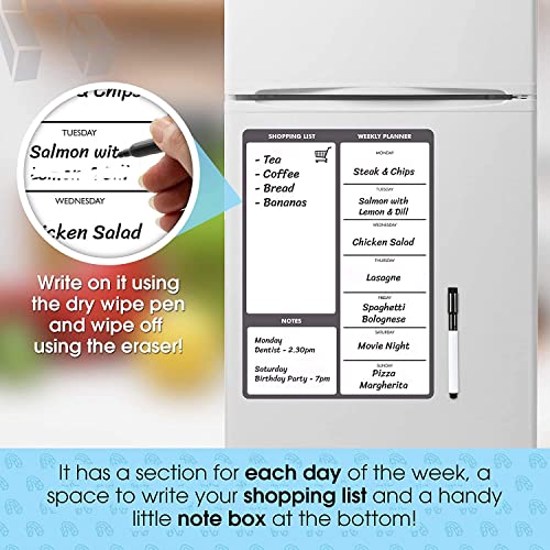 Pasto dieta settimanale lavagna magnetica cancellabile ¦ A3 bacheca - Cucina frigo lista della spesa food Prep Nutrition Family dieta (grigio/grigio) ¦ il magnete Shop