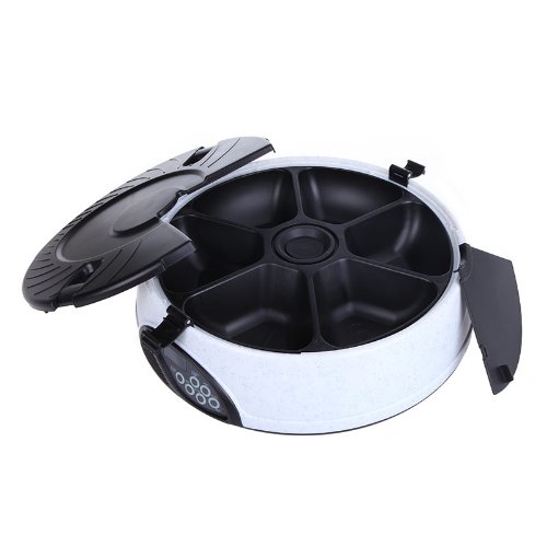 Sei separati grandi vassoi di cibo per un massimo di 6 diversi tempi di alimentazione. Ogni vassoio sarà aperto automaticamente durante l'ora del pasto prestabilito a turno