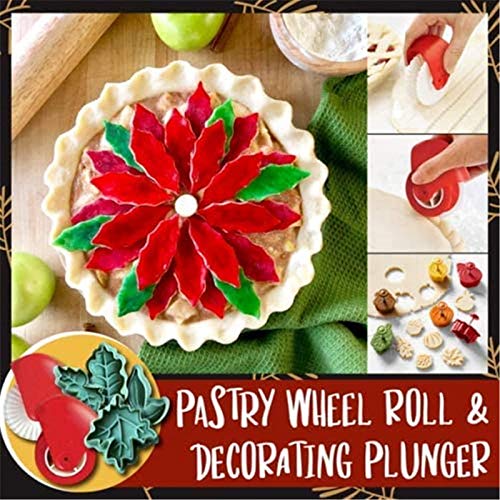 Pastry Wheel Roll and Decorating Plunger Cookie Biscuit Baking Tools, Pastry Pie Decoration Cutter, Pastry Wheel Decorator and Cutter, Beautiful Pie Crust, Set of 2
