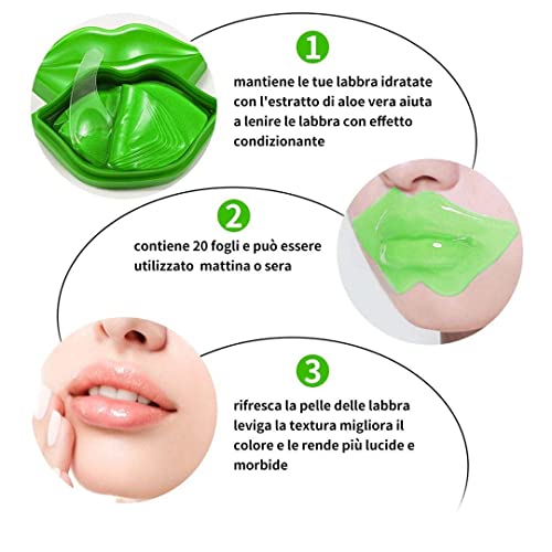 60 paia patch occhi + 20 paia patch labbra all'acido ialuronico antirughe, occhiaie e labbra secche e screpolate (Aloe Vera)