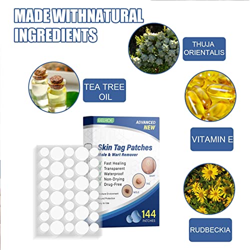 Patch per la rimozione dei tag della pelle | Rimozione talpa | Cerotti per la rimozione dell'acnes | Patch per la rimozione di verruche, macchie scure e imperfezioni per viso e corpo, 144 pezzi