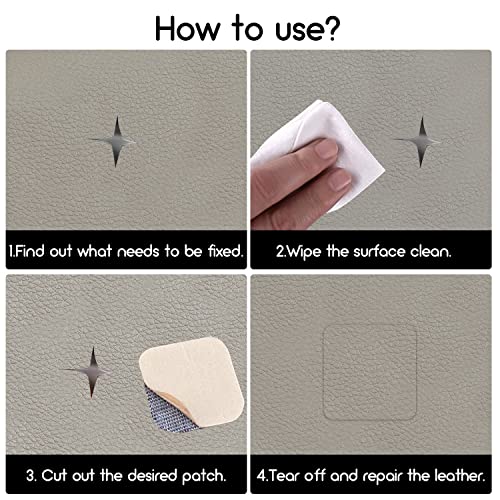 Patch di Riparazione in Pelle, Ecopelle Adesiva 40 cm x 120 cm, Patch Per Riparazione in PU Pelle Per Divani, Seggiolino Auto, Patch Pelle Adesiva Per Mobili Divano Sedile Auto (grigio chiaro)