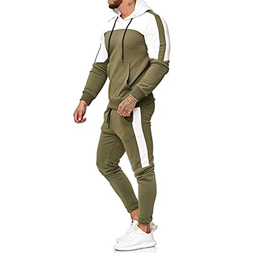 Patchwork Tute da Ginnastica da Uomo Felpe con Cappuccio e Pantalone Training Sportiva, Morbuy Calcio Jogging Casual Manica Lunga Giacca Ragazzo Sportiva Cappotti con Tasche (2XL,Verde militare)