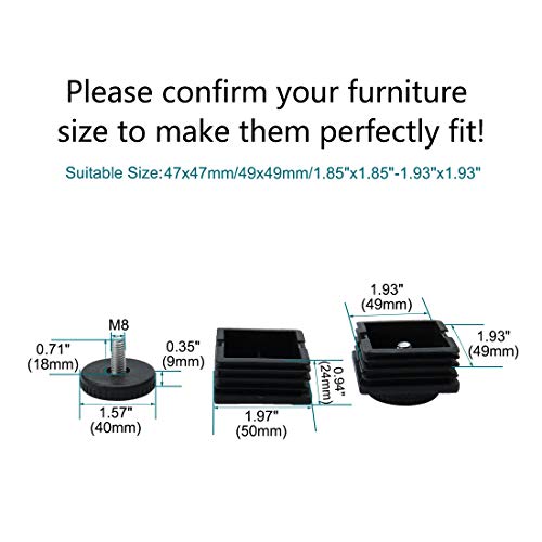 PATIKIL M8 50x50mm Piedini livellamento, 4 Set Quadrati Inserti Regolabili Mobili Scorrimento per Mobili