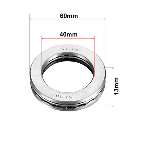 PATIKIL 51108 40mm x 60mm x 13mm ABEC3 Pressione Sfera Cuscinetti, 2pz Cromo Acciaio Una Via Direzione