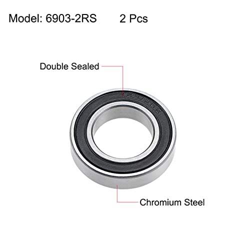 PATIKIL 6903-2RS 17mm x 30mm x 7mm Z2 ABEC1 Profonda Scanalatura Sfere Cuscinetti, 2pz Cromo Acciaio per Potenza Trasmissione