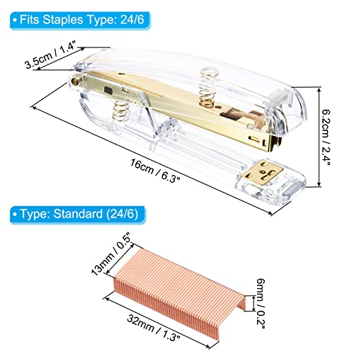 PATIKIL Acrilico Pinzatrice Set Portatile Elegante Manuale Semplice Scrivania Pinzatrice con 2000pz 24/6 Graffette per Aula Casa Ufficio Scrivania Oro