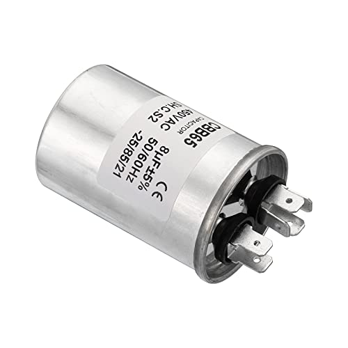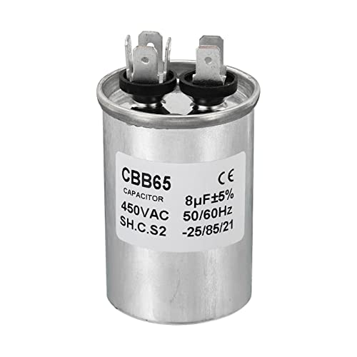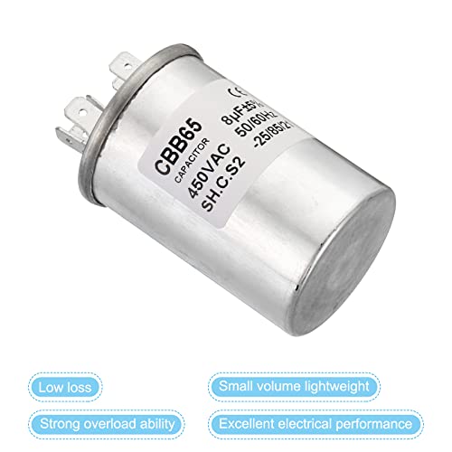 PATIKIL CBB65 8uF Corsa Condensatore 8mfd 1pz CA 450V Alluminio Custodia con 2 Pins per Aria Condizionata Compressore Motore Calore Pompa Condensatore