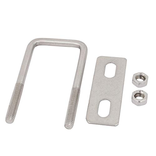 PATIKIL M6 30mm Interno Larghezza Quadrato U Bullone, 4pz 304 Inox Acciaio Bullone a U con Esagonale Dado Piatto, Argento Tono