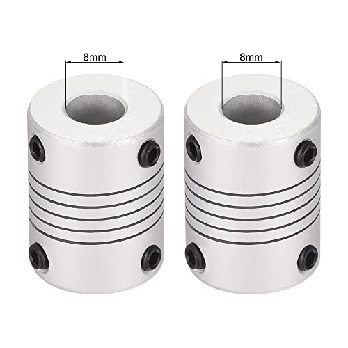 PATIKIL Da 8mm a 8mm L25xP19 Alluminio Lega Albero giunto Flessibile Attacco Motore Connettore Giunto per Fai da Te Argento Tono,2pz
