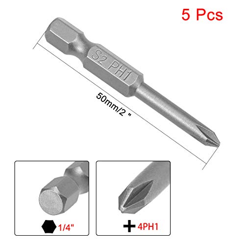 PATIKIL 4mm PH1 Magnetico Phillips Cacciavite Punte, 5pzs 1/4" Esagonale Gambo 2" Lunghezza S2 Potenza Strumento