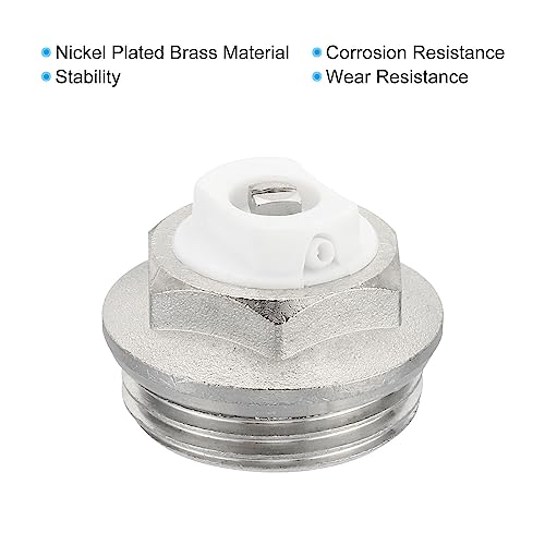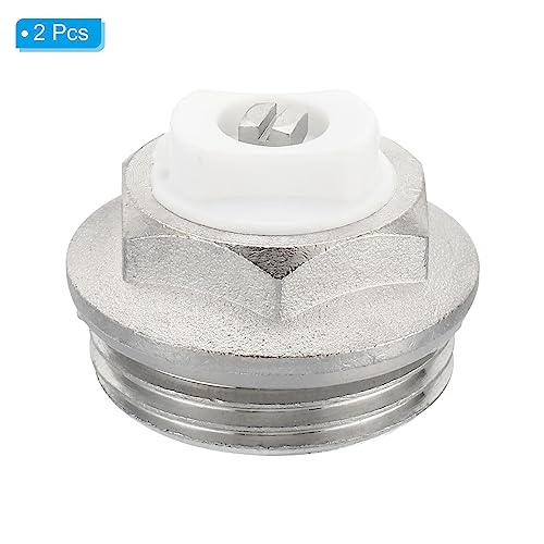 PATIKIL 1" BSP Maschio Filetto Manuale Radiatore Aria Sfiato Tappo Valvole, 2pz Nichel Placcato Ottone Spina per Radiatore Riscaldatore, Argento Bianco