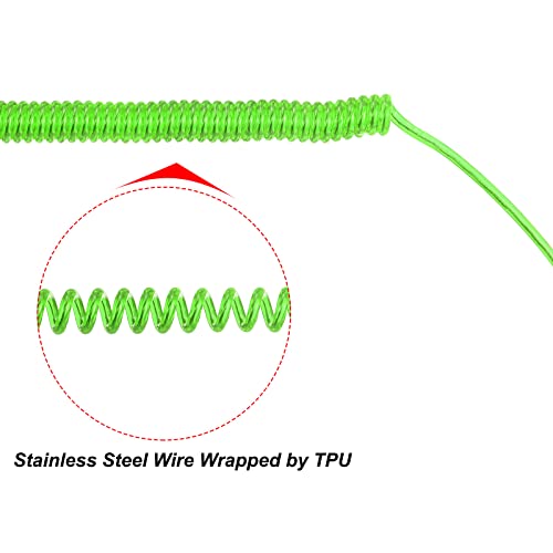 PATIKIL 32,8ft Pesca Arrotolato Cordino, Pesante Molla Sicurezza Corda Estensione Cavo Tether Retrattile con Metallo Fermaglio per Aste Pinze Palette, Verde