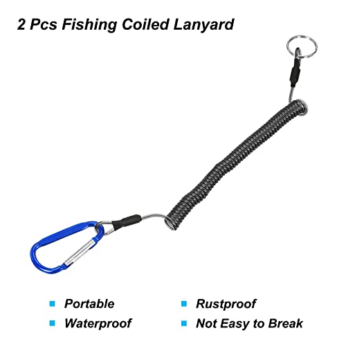 PATIKIL 4.9ft Pesca Strumento Cordino, 2pz Sicurezza Cavo Spirale Cordino Tether Retrattile con Blu Metallo Clip Portachiavi per Canottaggio Kayak, Trasparente Nero