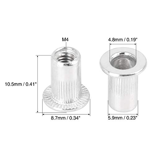 PATIKIL M4 Rivet Dado, 110pz Alluminio Lega Auto Piatta Testa Rivet Dado Filettata Inserto, Tono Argento
