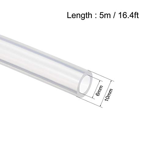PATIKIL 6mm ID x 10mm OD 5m Silicone Tubo, Flessibile Silicone Gomma Tubo Acqua Aria Tubo Flessibile per Pompa Trasferimento, Trasparente